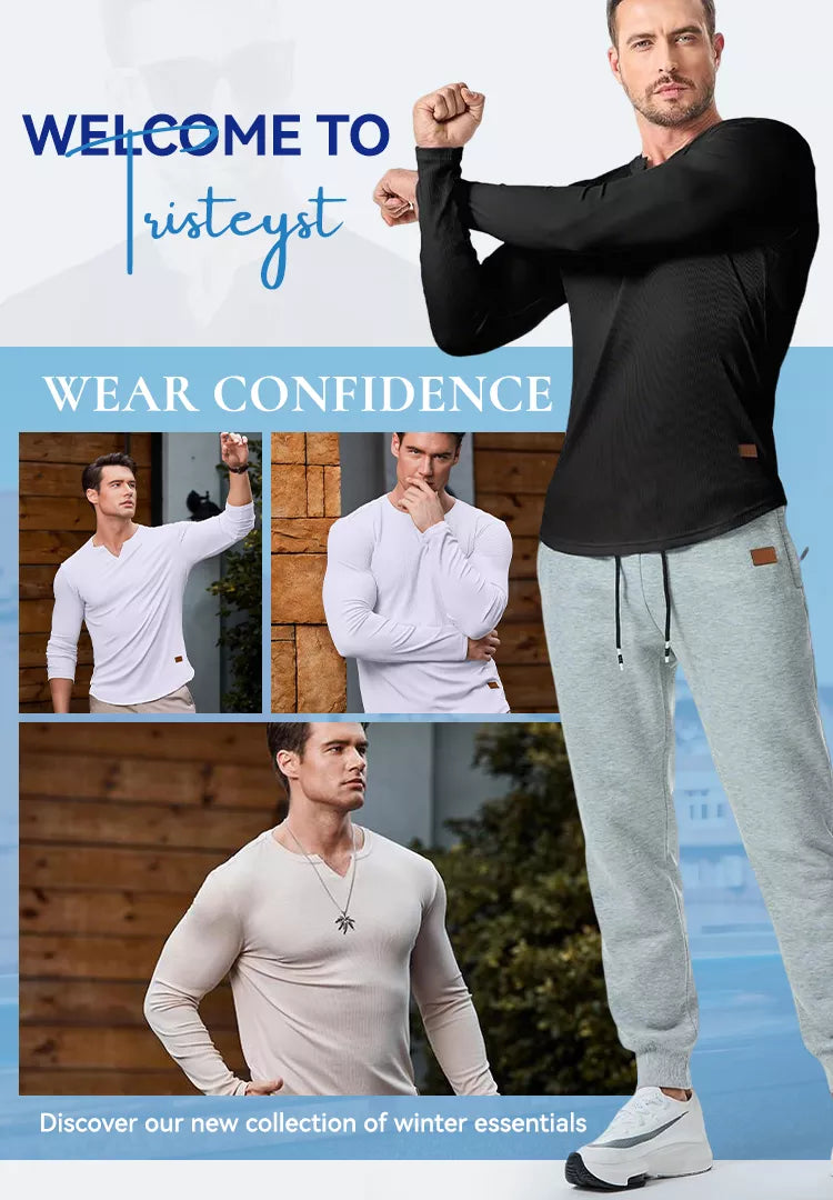 V-Neck Longline Ribbed Tees Shirts Long Sleeve Gym Workout Athletic Menswear Tops