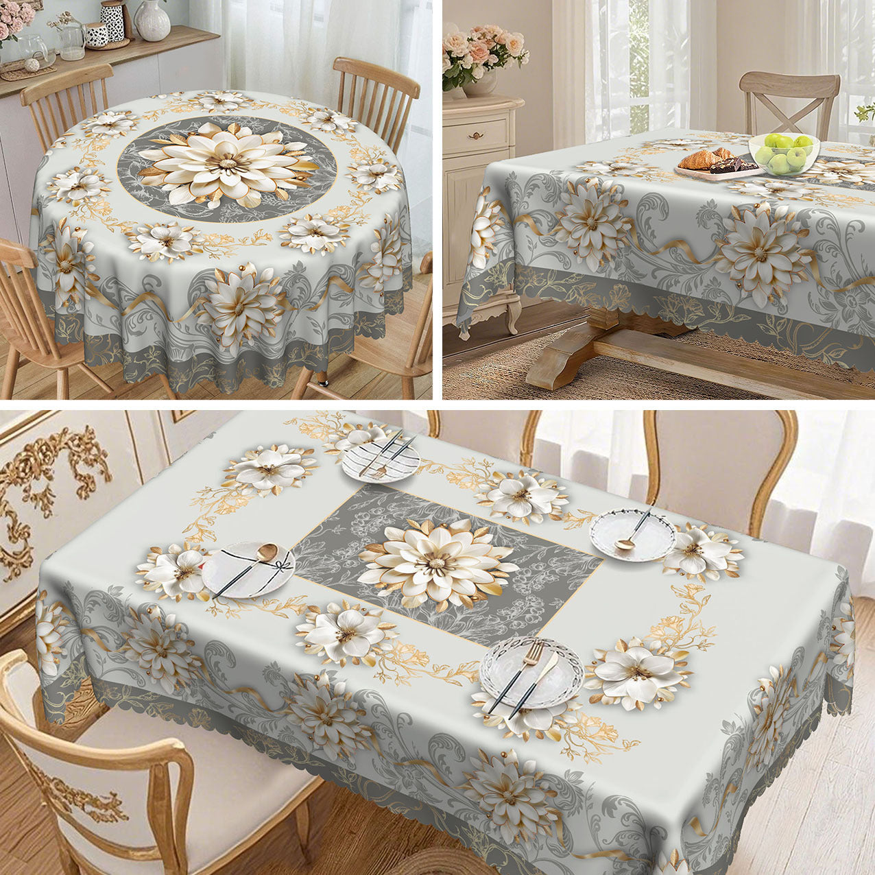 DURABLE POLYESTER FABRIC - Crafted from premium polyester, this tablecloth is designed for longevity. It naturally resists wrinkles, shrinking, and wear, making it a practical and reliable choice for both everyday meals and special occasions.